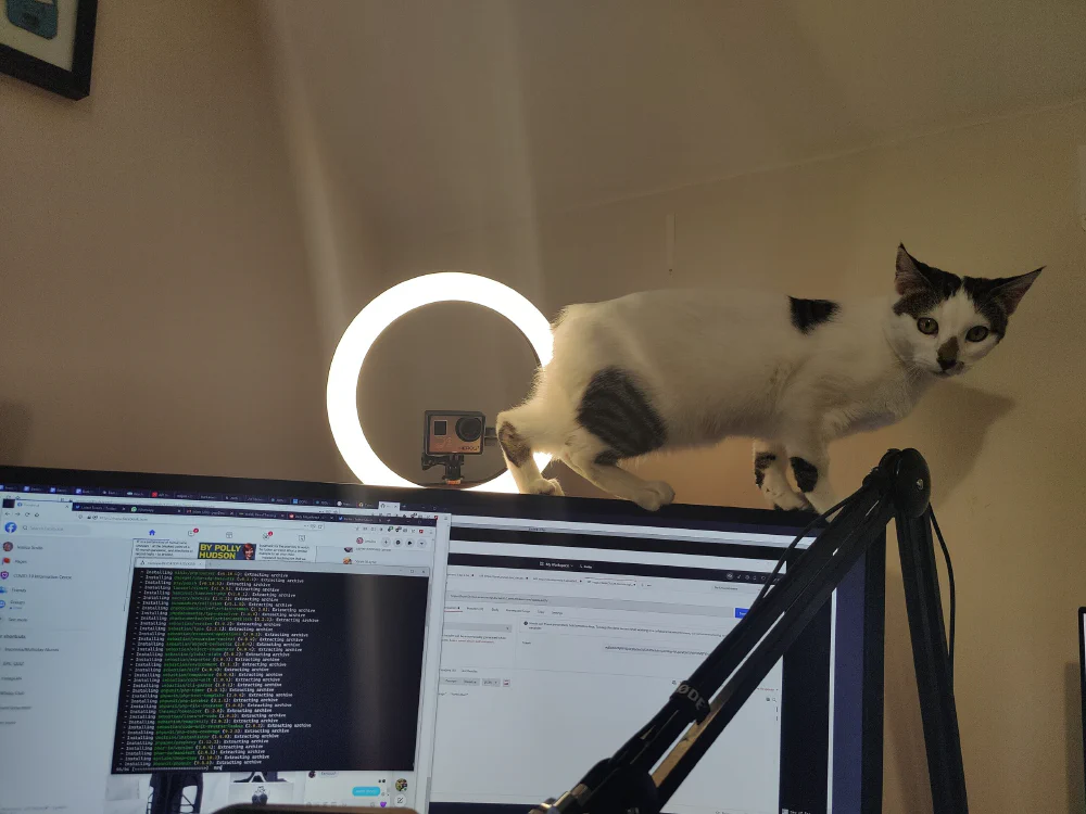He became a regular fixture during standup meetings at work, and would make himself known by jumping up at inopportune moments. When I played games, he’d sit on top of the monitor and swipe down at the moving sprites.
