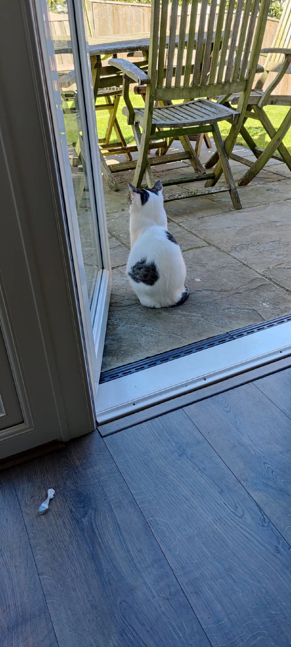 He started to get into a daily routine. Leave the house at 8-9AM, patrol his territory, call in at 11AM — have some food, find his humans for scritches and fuss; then back out. Repeat multiple times until finally coming in at 11PM and sleeping.